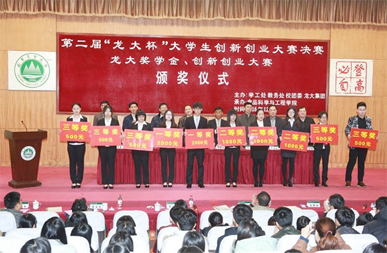 12月11日,山東農(nóng)業(yè)大學(xué)食品科學(xué)與工程專業(yè)學(xué)生董銘、李秀清等35名學(xué)子,在“龍大獎學(xué)金、創(chuàng)新創(chuàng)業(yè)大賽”頒獎儀式上領(lǐng)到了龍大食品集團(tuán)有限公司頒發(fā)的獎學(xué)金,獲得龍大集團(tuán)獎勵的還有10個大學(xué)生創(chuàng)新創(chuàng)業(yè)團(tuán)隊(duì)。